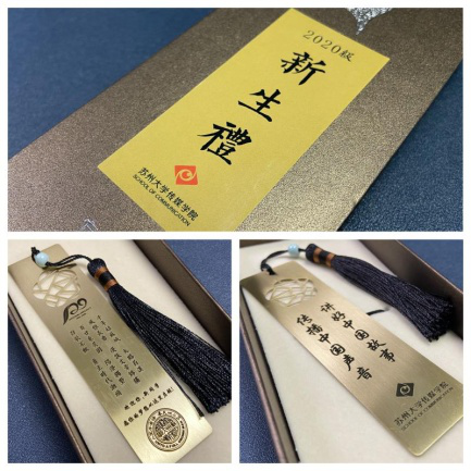 现场,各个学院用自己独特的方式迎接自己的学子。数学科学学院给每个报到的2020级新生准备了一个信封,信封中有给一年后的自己写一封信的信纸,以及一张本专业满绩点的成绩单,希望借此见证新生一年的成长。电子信息学院制作了欢迎新生的互动H5,书记和院长邀请同学进行视频通话,还有精心定制的苏大明信片,请家长写下对孩子的期盼和祝福。传媒学院为新生准备了书签,以礼相赠,希望同学们在苏大能与书相伴,收获美好的校园生活。书签选用了苏州园林里的花窗造型,搭配苏州大学120周年校庆标识,并在书签上刻有“弦歌不辍,勇立时代潮头”等字样,寄语传媒学子勇担青年责任,讲好中国故事,传播中国声音。“青春”“政”“启航”作为2020年政治与公共管理学院迎新主题印嵌在定制书签上,与东吴四季时景相呼应,展开一幅幅生动的扬帆启航图。接过这份特别的礼物,“小20”们也纷纷“回礼”,送上自己的原创书画作品。机电工程学院让两名志愿者扮作机器人,让“萌新”们惊喜连连,纷纷合影留念。