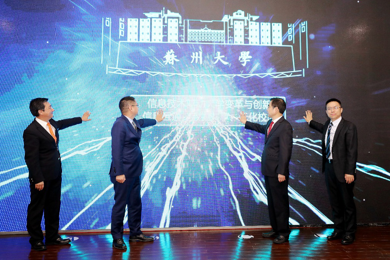陆春云副市长、熊思东校长、杨萍副总裁、鲁伟总经理共同开启“云中苏大”建设。