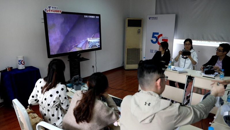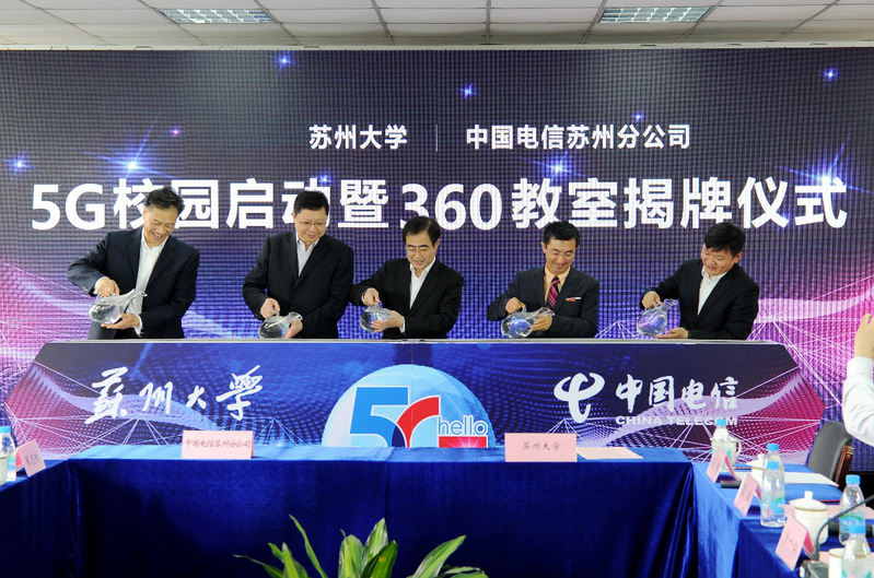 最后,与会领导共同开启苏州大学·苏州电信5G校园。