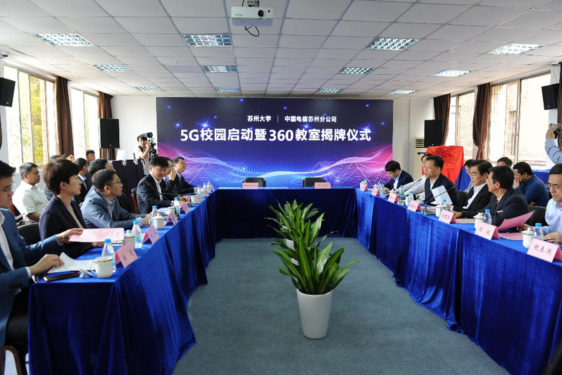 为加快推进“云中苏大”建设,促进5G技术与教学相融合,5月19日上午,苏州大学·苏州电信5G校园启动暨360教室揭牌仪式在天赐庄校区博习楼举行。苏州市副市长陆春云、中国电信苏州分公司总经理金羿、华为技术有限公司江苏代表处区域客户部部长霍建雄,我校校长熊思东、副校长杨一心以及中国电信、华为公司、我校相关职能部门和苏州大学附属第一医院负责人出席仪式。仪式由杨一心副校长主持。
