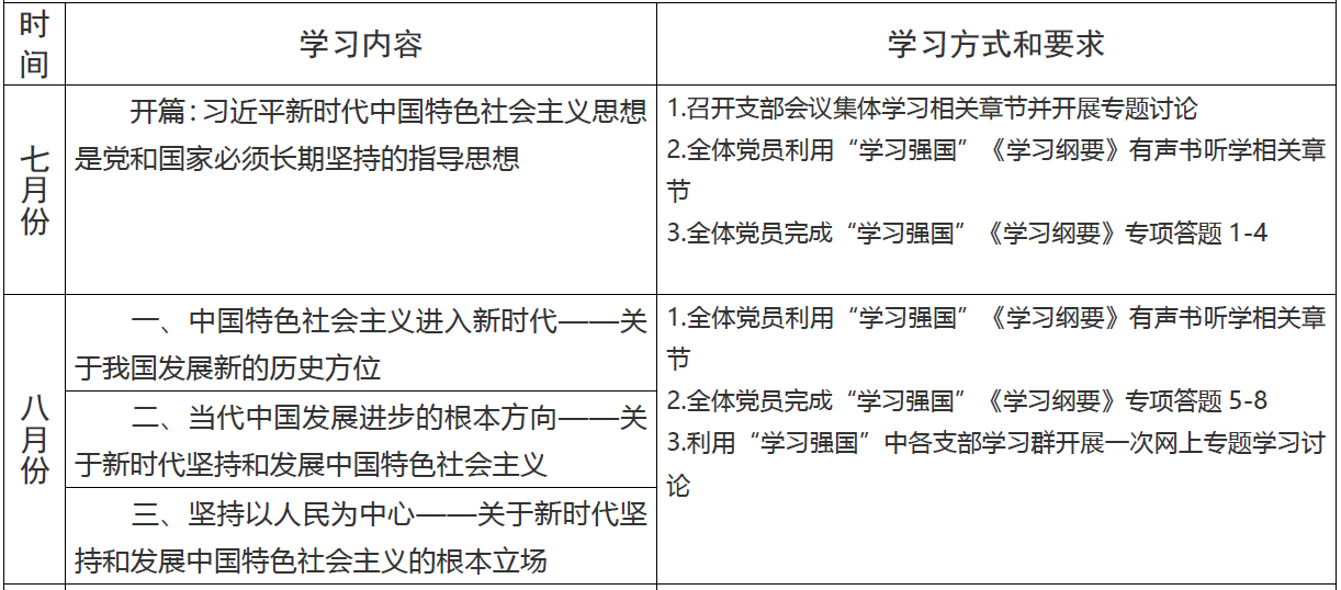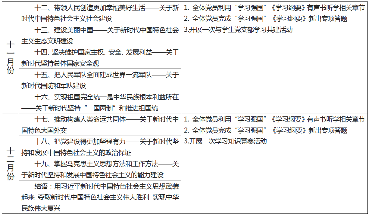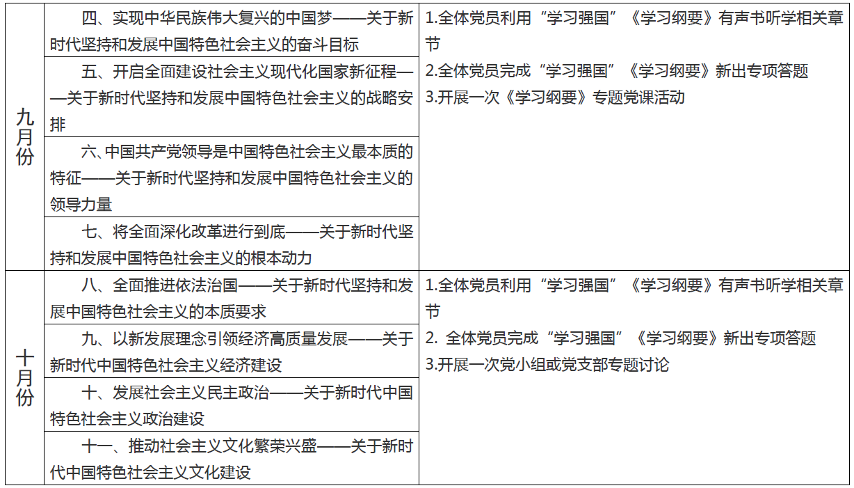 支部《习近平新时代中国特色社会主义思想学习纲要》学习计划